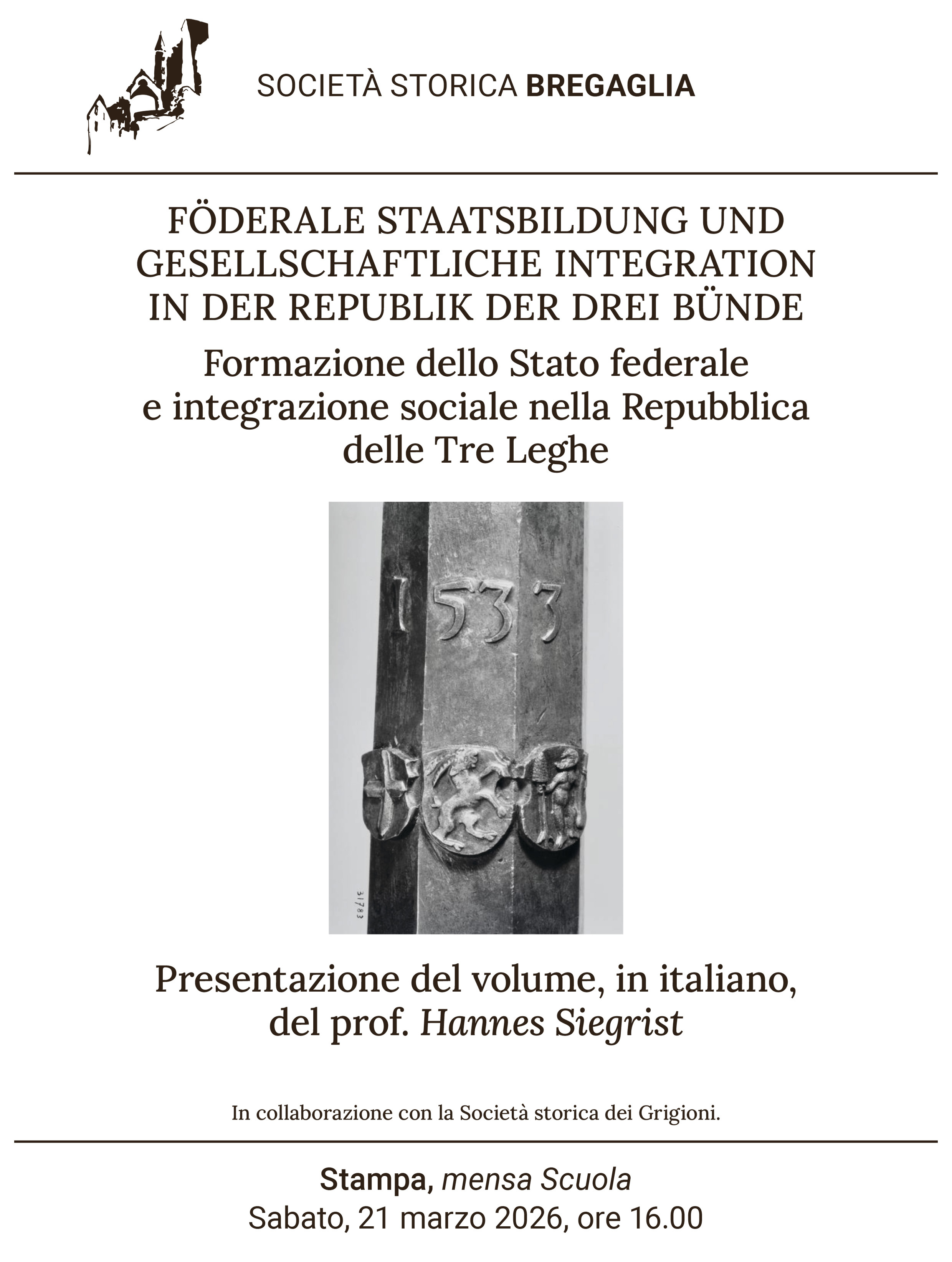 Illustra la storia della costituzione, della cultura politica e dell'integrazione sociale nello Stato libero delle Tre Leghe e nei suoi territori soggetti di Valtellina, Chiavenna e Bormio.